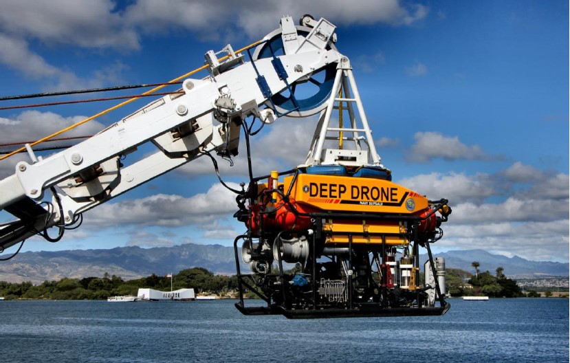 DEEP DRONE is a 4,100-pound Remotely Operated Vehicle (ROC) that is designed to meet the Navy's mid-water salvage requirements down to a maximum depth of 8,000 feet seawater.