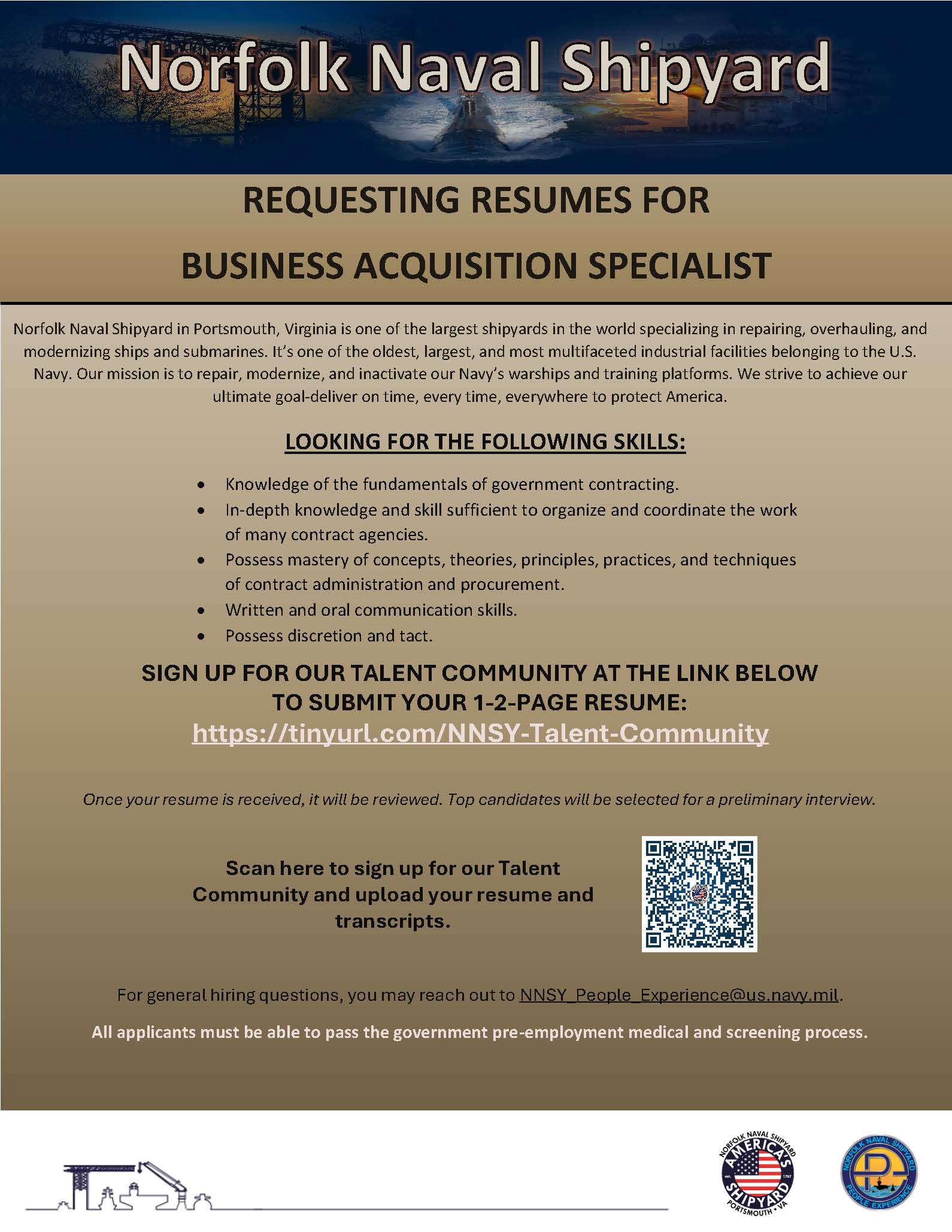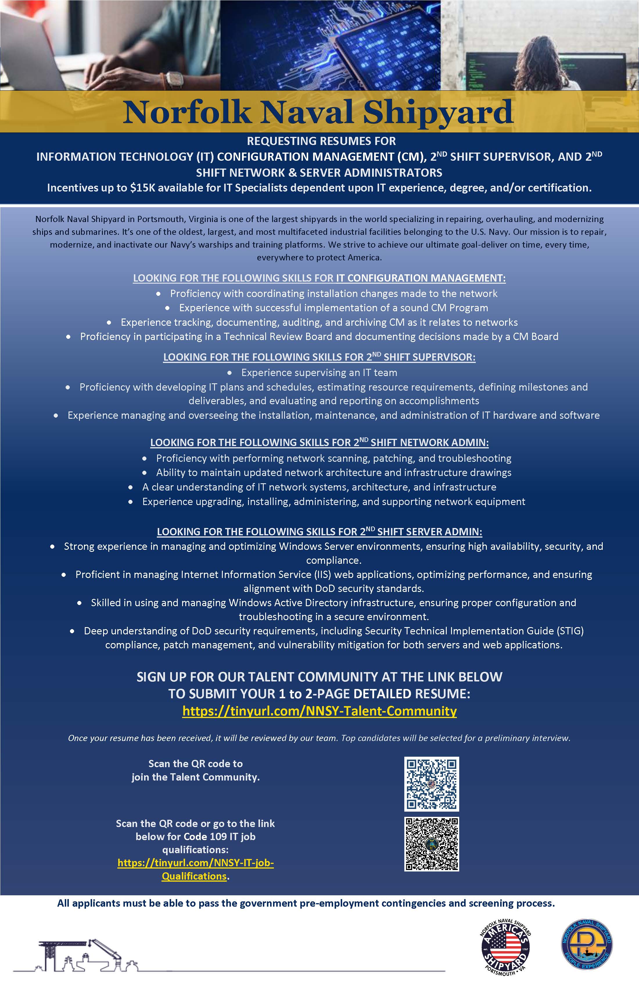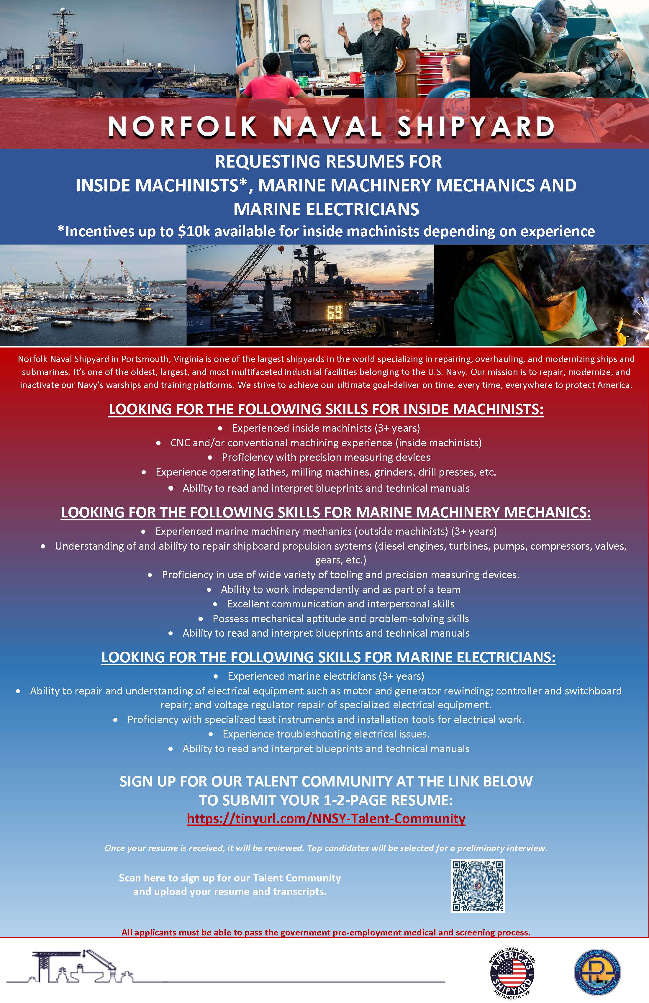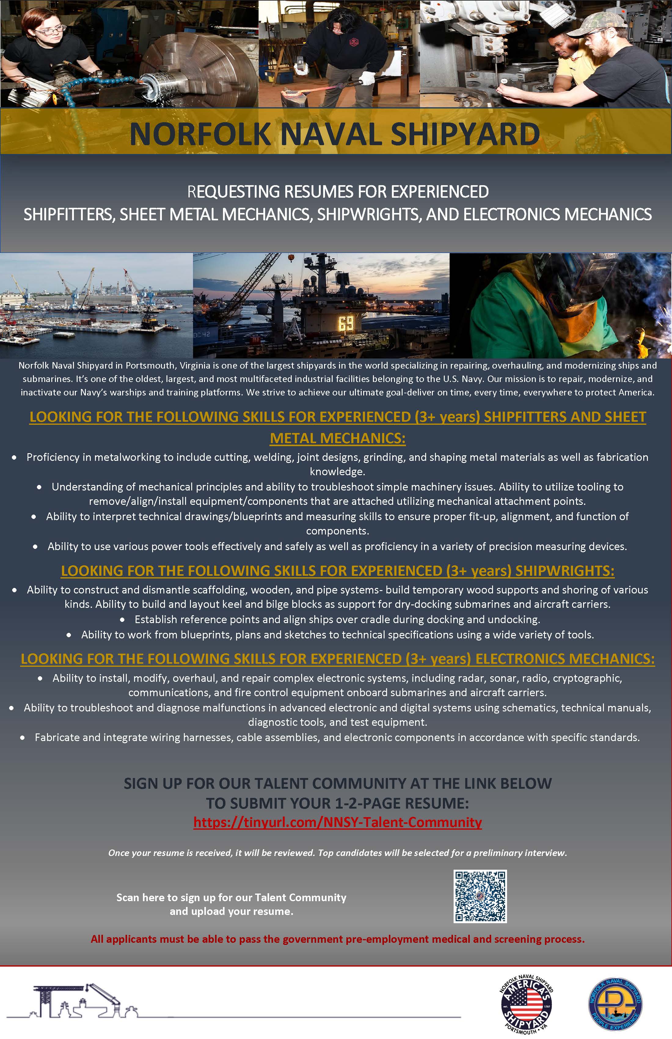 NNSY offers full-time employment in a variety of career fields. We also offer four-year apprenticeships with eligibility at all levels of education and work experience.