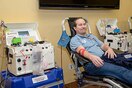 Timothy McDermott, an employee in the Undersea Warfare Weapons, Vehicles, and Defensive Systems Department, donates double red cell blood during a drive held in February 2019.