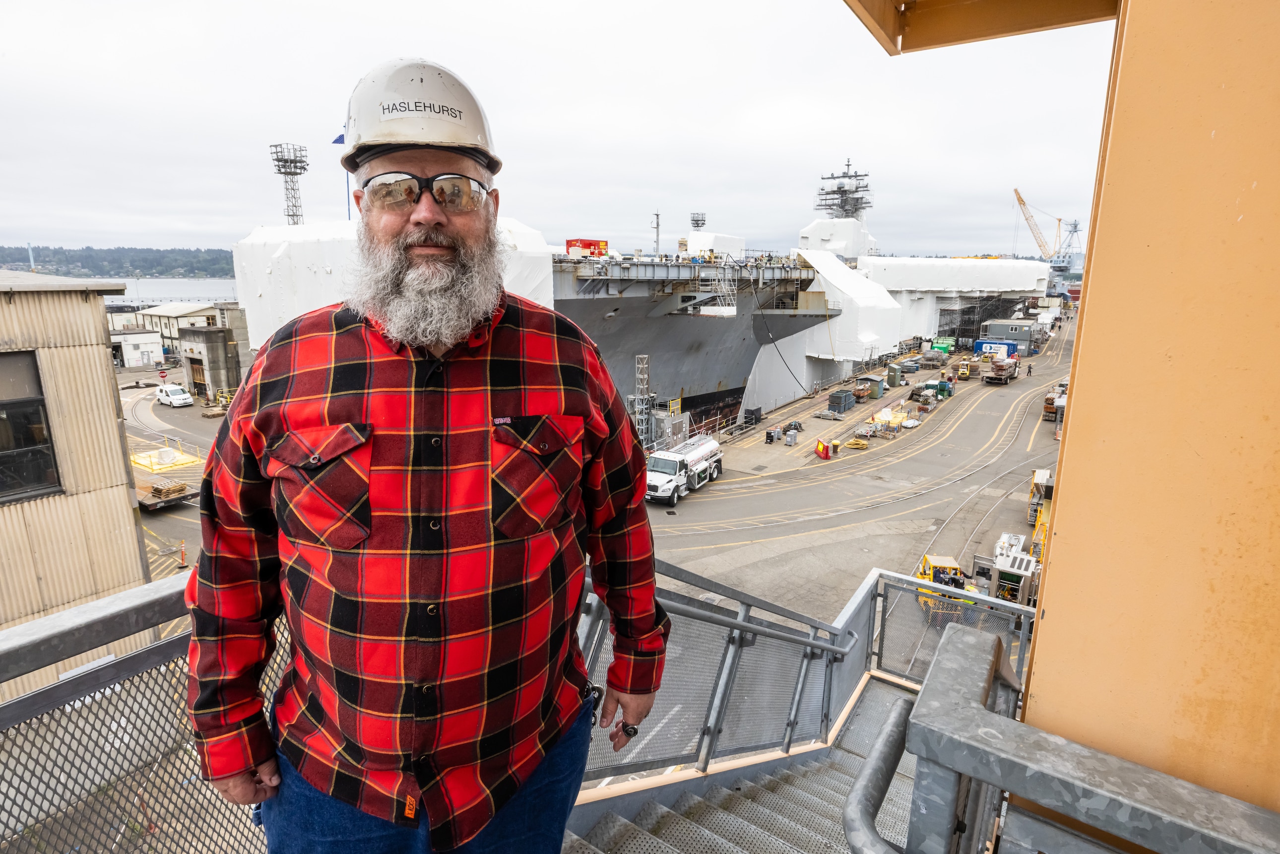 Eric Haslehurst, mechanical engineering technician, Code 260.1, Carrier Rotating Machinery, recently received the Carrier One Team's "Excellence in Carrier Maintenance Award" for his work at at Puget Sound Naval Shipyard & Intermediate Maintenance Facility in Bremerton, Washington. (U.S. Navy photo by Ben Hutto)