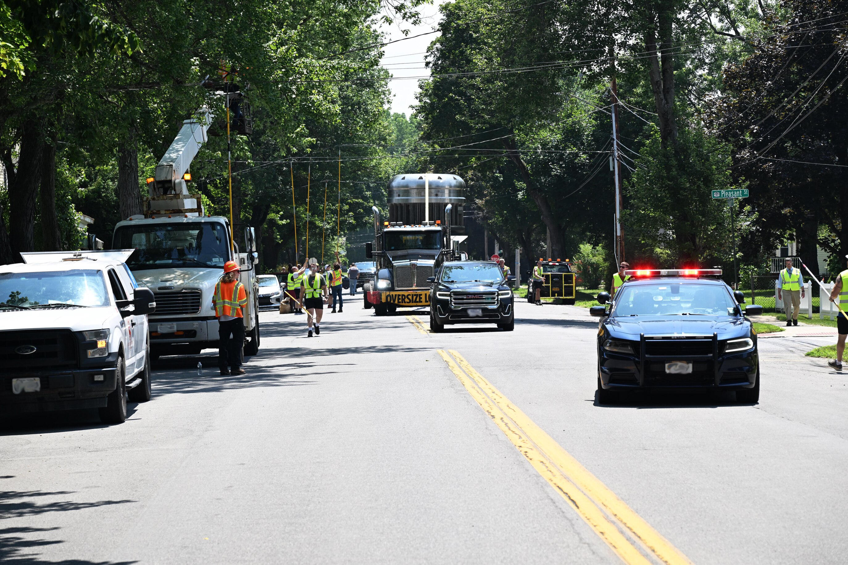 As part of the MARF Defueling Layup Availability (DLA) Project at the Kenneth A. Kesselring Site (KSO), West Milton, New York, Norfolk Naval Shipyard workers, Lucia Specialized Hauling of VA, Inc., New York State Police and other agencies partnered to transport a loaded spent fuel shipping container which will be sent to Idaho National Laboratory, Idaho Falls, Idaho for extensive testing.