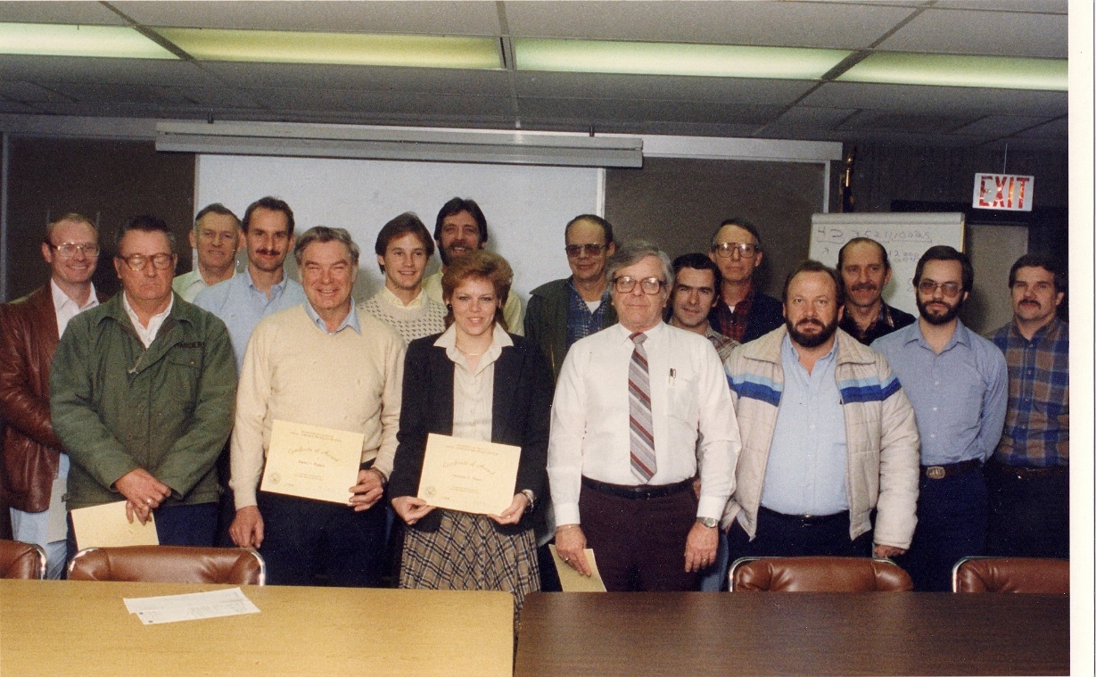 Figure 4. 1986 Warhead Branch Awards: Bill Holt, Russ Marders, Aubrey Jennings, Sam Waggener, Dan Poppen, Eric Bosworth, Bill Grigsby, Christine Mason, Hobert Southall, Travis Shelton, Benny Simpson, Bill Mock, Harry Donovan, Tom Swierk, Charles Garnett, Bill Henderson.