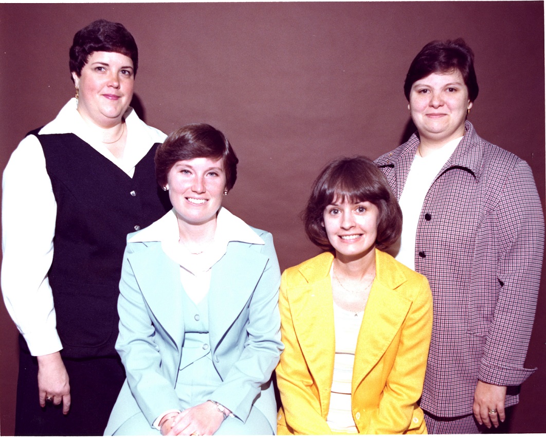 Ellen Gray, Jackie Hart, and Bob Sudo (left to right) in Computer Room, Command and Decision Weapons Control System area of the Aegis Computer Center, load Aegis tactical programs into computers as part of the evaluation process. Ultimately these programs were delivered to ships in the fleet. Also shown is Jim Clark of the Fire Control Group. 1984