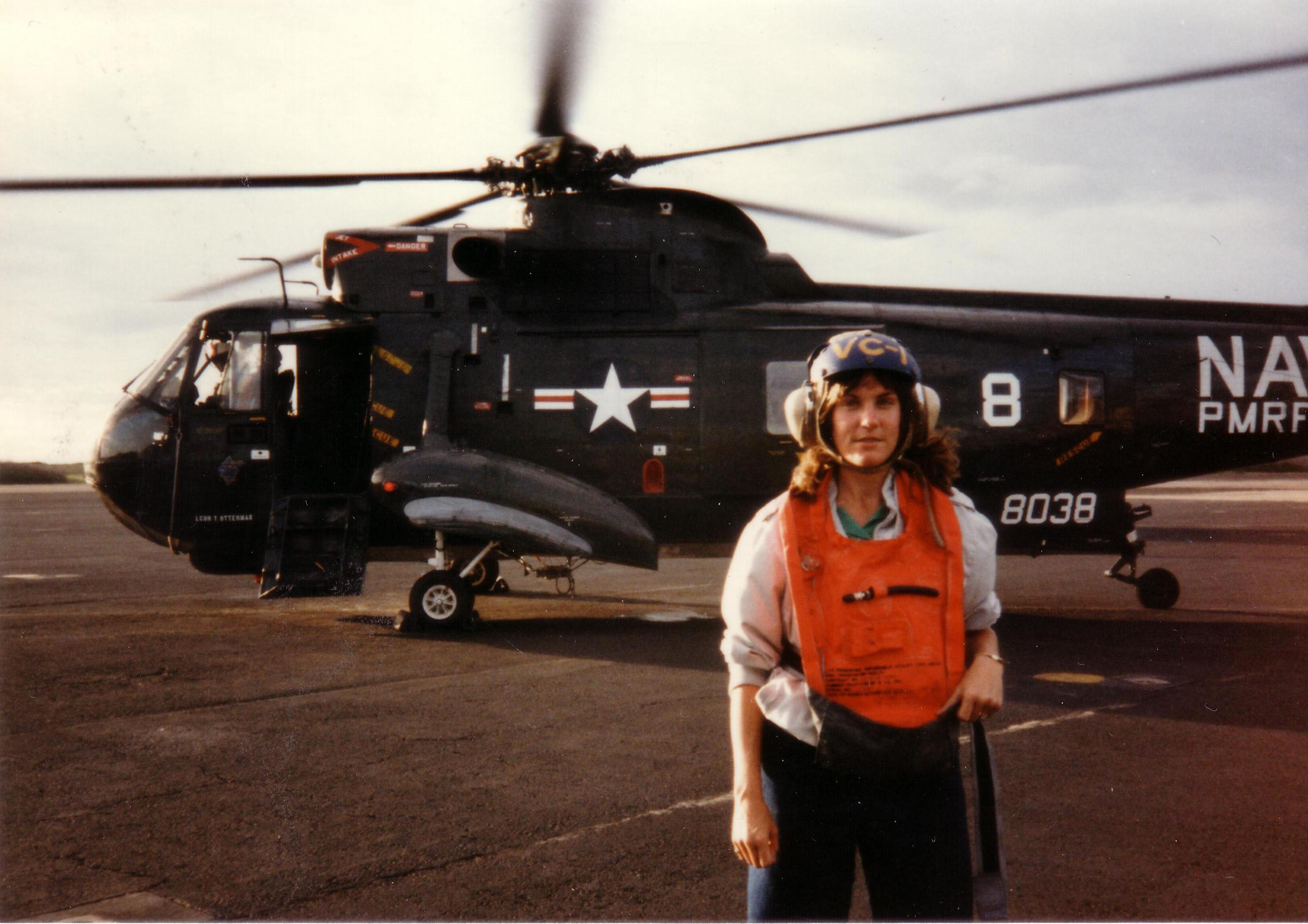 Karen Jackson, C&D element group member, performs testing aboard CG-47, 1984.