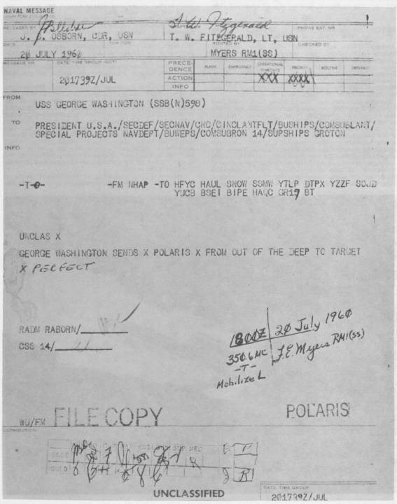 Report of the first flight test from the USS George Washington (SSBN 598), courtesy NHHC.