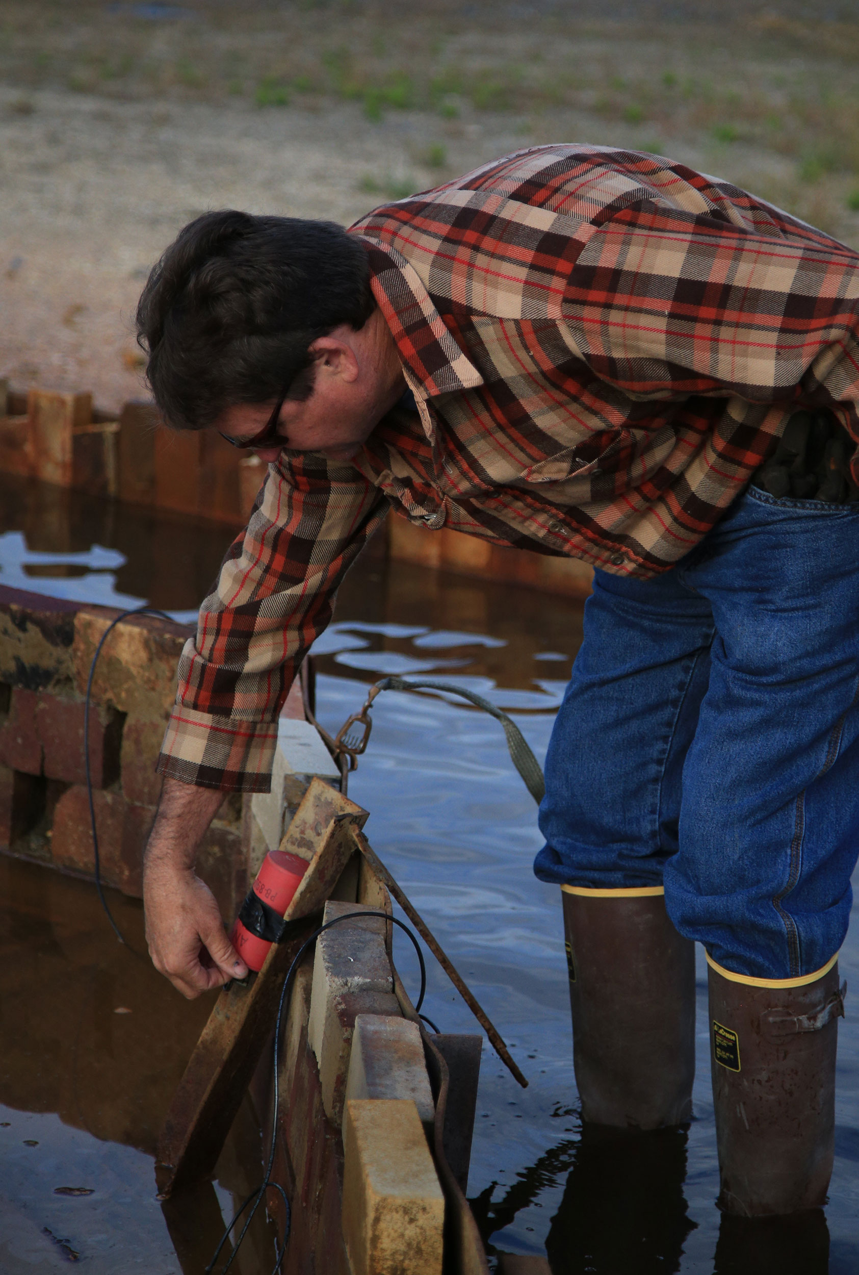 Henry Bourne prepares thermite grenade for 2,000 jet fuel, fast cook off test initiation.