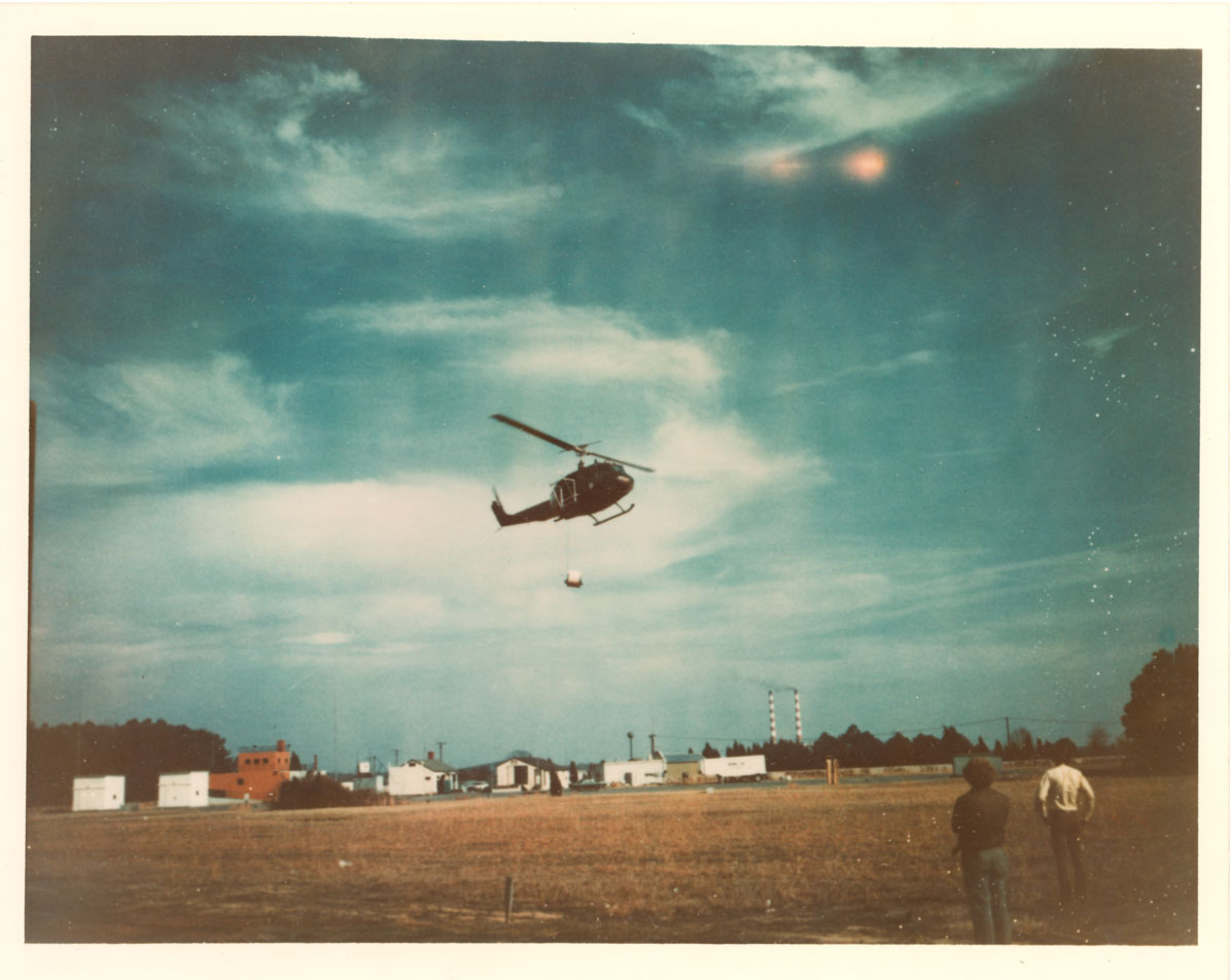 We always had difficulty measuring exactly what these homemade systems would produce and radiate. Measurements were made at some distance (in the far field) and compared to theory. Since this was before the age of desktop computers, the influence of the ground was difficult to model and predict, so we decided to suspend magnetic field sensors below helicopters to get above-ground effects. These sensors were several feet across and were lowered well below the helicopter on ropes and cables while passengers inside took oscilloscope photographs of the received pulses. This worked fairly well as long as the sensor did not start swinging wildly, which happened on occasion. There was always someone ready to quickly cut the ropes if things got out of hand.