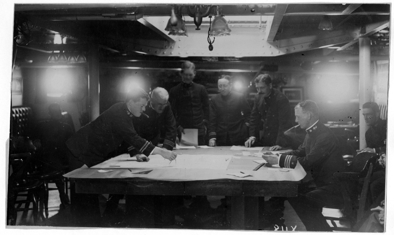 | Gardner L. Caskey is the furthest on the left at the table in this photo, take onboard the USS Wyoming (BB-32), courtesy of the Naval History & Heritage Command |