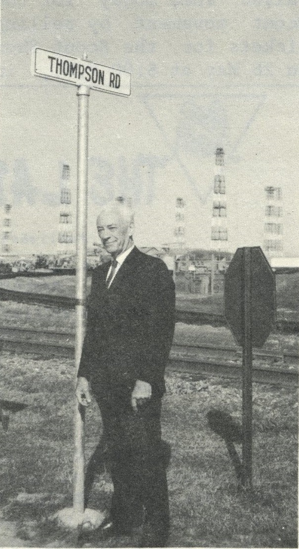 | Dr. Thompson after cutting the ribbon for Thompson Road in April of 1967. |
