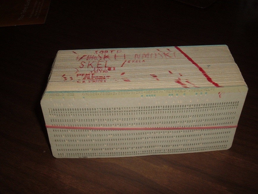 Computer punch card deck (circa 1969) donated to the MIT Computer Museum in 2006 by Arnold Reinhold. (Photo by Arnold Reinhold, licensed under the Creative Commons Attribution-Share Alike 3.0 Unported license.)