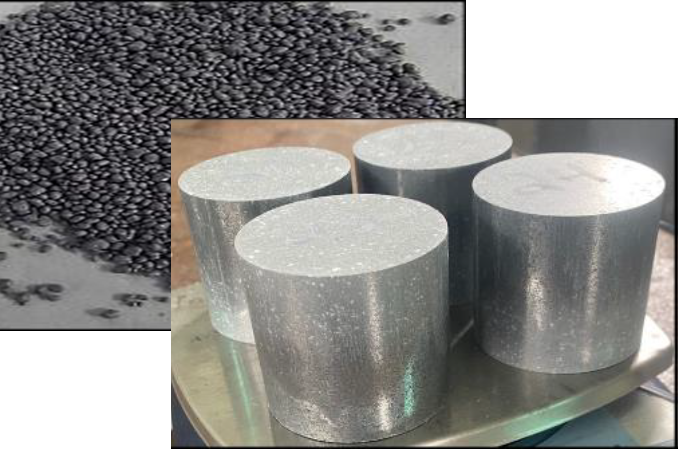 4th photo: Aluminized pressed explosive produced using Resonant Acoustic Mixer (RAM).