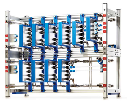 1st /2nd photo: Microfluidics cross-section of Corning G1 Glass Reactor for continuous flow synthesis.