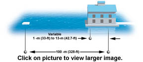 Test distance can be extended 20m (65.6 feet) outside of the platform using an extension that projects off the rear door and external rigging. Tests to a distance of 100m (328 feet) can be achieved by using a moveable float or "mini-dock" that is in the water behind the platform. Advance notification of this requirement will facilitate the required external rigging by the Dodge Pond Acoustic Measurement Facility staff.