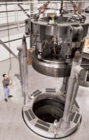 The APTF offers a wide range of rigging options. An external rotator located above the small port (0.84 meters in diameter) can accommodate devices and/or material samples up to 1180 kilograms. An underwater rotator located below the large port (1.85 meters in diameter) allows devices and/or material samples of up to 2700 kilograms to be rigged. Two of the three carriages can accommodate devices up to 45 kilograms. The third carriage contains a motorized positioning system with full 360 degree azimuthal control and vertical control over a 202 millimeter height. The rigging weight limit of this latter carriage is 27 kilograms. Each of these carriages can be independently positioned along the axis of the tank.