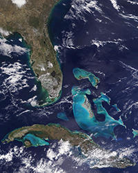 In ceremonies directed by Vice President Hubert Humphrey, the decade-long effort to establish a deep water test and evaluation range with 3-D capabilities culminates with the official commissioning of the Atlantic Undersea Test and Evaluation Center (AUTEC) on Andros Island in The Bahamas in 1967. AUTEC is adjacent to the embayment known as Tongue of the Ocean (right) and has shore-based support headquarters in West Palm Beach, Fla.