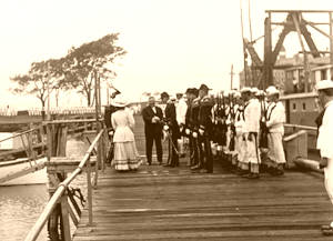Theodore Roosevelt comes ashore at the Naval Training Station in 1913 (left).