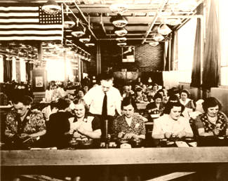 With women in the factory (left), primer output increased from 5,000 per week to 8,000 per day. Women averaged more than six times the output of men, explaining why the Naval Torpedo Station was an early equal opportunity employer.