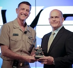 WASHINGTON (June 2, 2016) Navy Strategic Systems Programs (SSP) Director Vice Adm. Terry Benedict presents the SSP Director's Award to Naval Surface Warfare Center Dahlgren Division (NSWCDD) senior scientist Kim Payne for leadership impacting the Fleet Ballistic Missile Program. Payne was honored for her expertise in fire control software and targeting models as well as quality assurance methodology enhancements to improve Fleet Ballistic Missile deployed software product effectiveness and efficiency.  Benedict said her efforts, “directly contributed to the Fleet Ballistic Missile Program and successful SSGN (Ohio-class guided-missile submarine) conversion software initiatives.”  (U.S. Navy photo/Released)