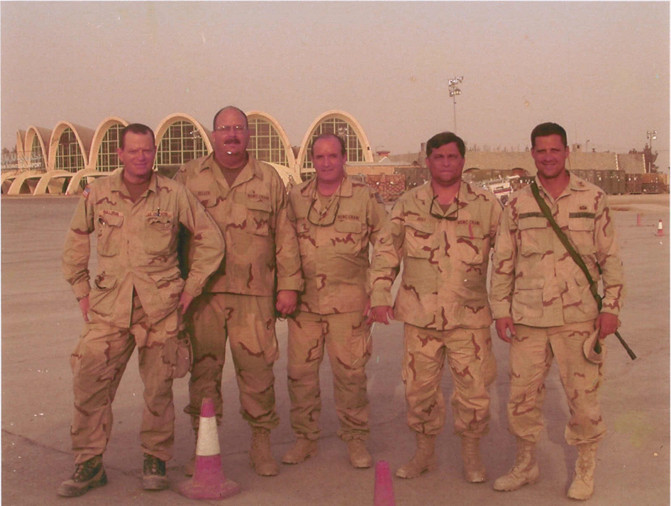 Figure 3: "NSWC Crane employees Chuck Zeller, Bobby Just, and Gus Taylor are with Army Rapid Equipping Force (REF) Warfighters at Kandahar International Airport in the spring of 2003."