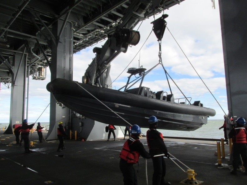 · Launch and recovery of a 7m and 11m Rigid Hull Inflatable Boat (RHIB)